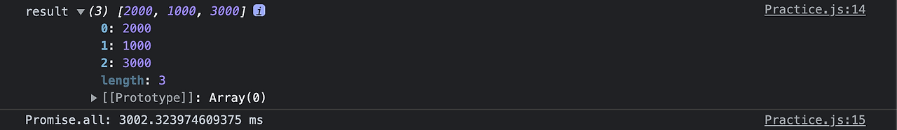 📌 반환되는 결과 배열의 순서는 작업 완료 순서와 관계 없이 파라미터로 받은 배열(순회 가능한 객체)의 순서와 동일하다.