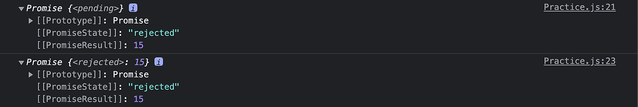 // Promise.resolve(15)의 순서가 더 빠르기 때문에 Promise.resolve(15)의 결과값을 반환한다.