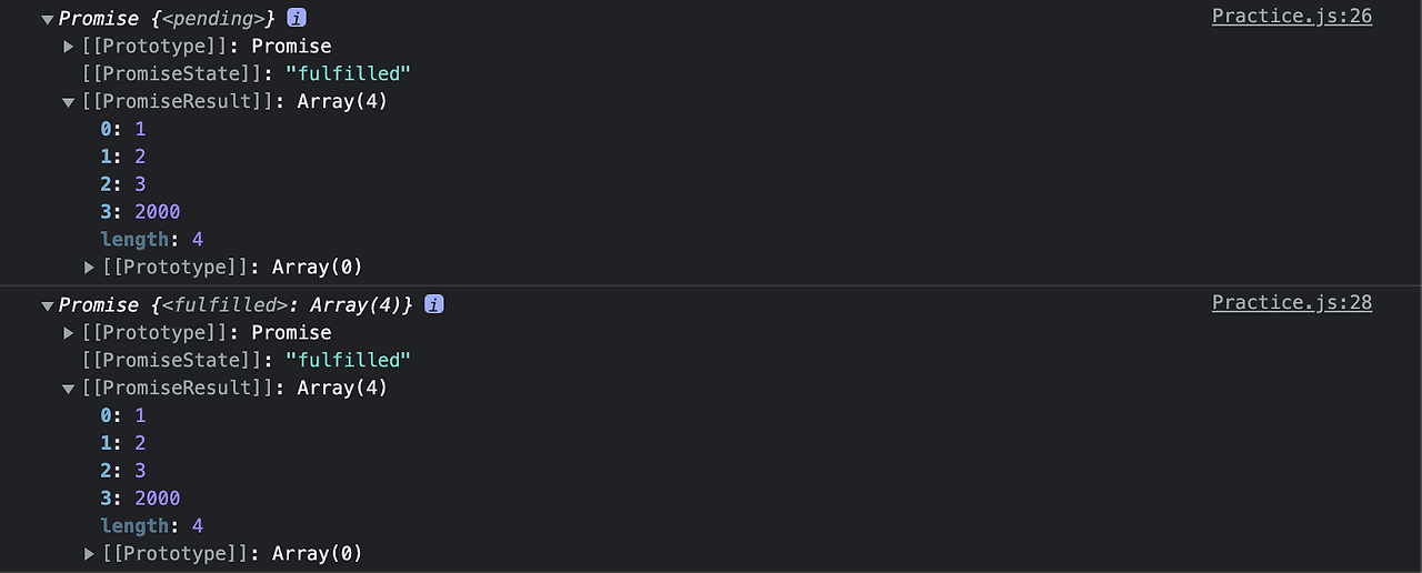 📌 순회 가능한 객체가 비어 있는 경우 동기적으로 즉시 이행하며, 즉시 이행한 프로미스를 반환한다.